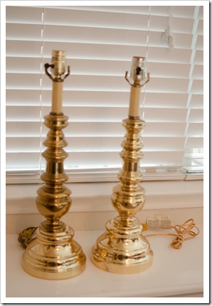 I found one of these bases one week and when I went back a couple of weeks later, I found the matching twin! I was ecstatic!! Now obviously, they don’t look too special or appealing, but I LOVE the overall design and shape. With a little loving care, a cute shade, and some spray paint TLC, I knew they had BIG potential. And the best part?! These little lamps cost me a total of $5 EACH!!!!!!